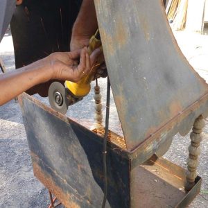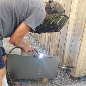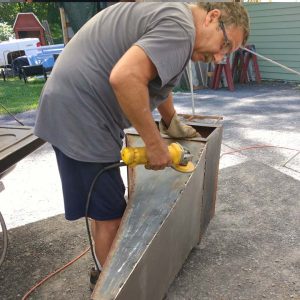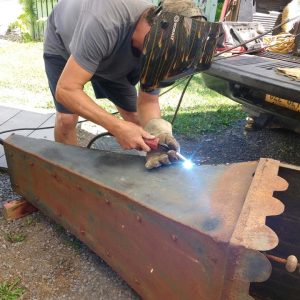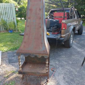 OUTDOOR FIREPLACE This was a vintage hand-crafted outdoor stove that the owner wanted to refurbish and be able to use again. The back needed replacement and some seams needed to be welded as well.