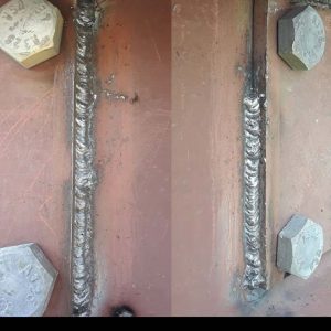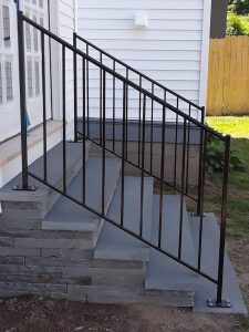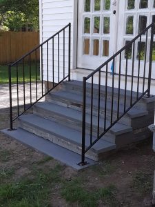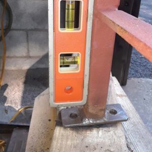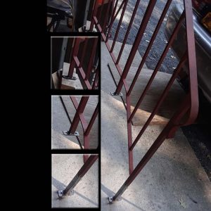 STAIR REPAIR This rail had rotted fasteners at the base. I removed the rail and welded the new feet. As you can see special attention to the alignment with a level was to assure a perfect installation