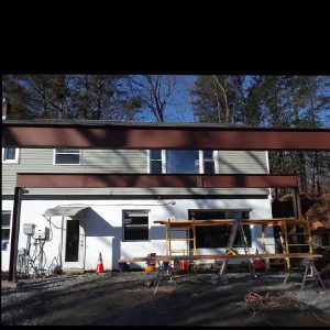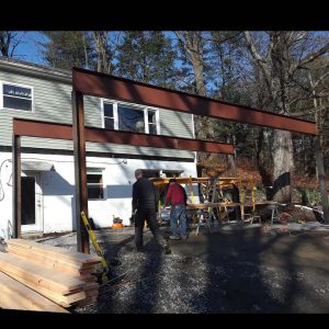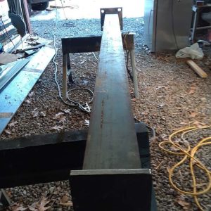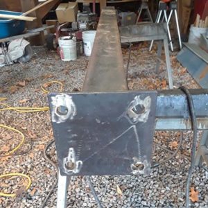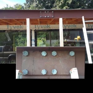 STEEL DECK FOUNDATION This was a project utilizing heavy duty I-beam” steel columns , with holes drilled and welded to a 12″ I-Beam to support a carport with a deck top.