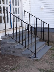 DOUBLE HAND RAILS I measured and fabricated the rails and fastened to the bluestone steps