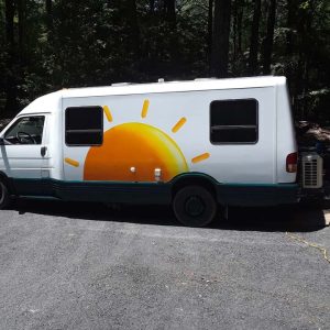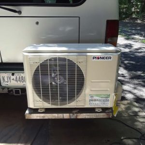RV REAR EXTENDED AIR CONDITIONER BRACKET This RV came to me with a rusted bracket that was becoming unable to bear the weight of the heavy air conditioning unit extended off the back frame. I welded and additionally bolted the bracket to the frame for extra security.