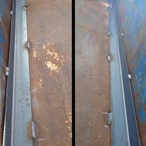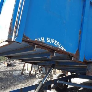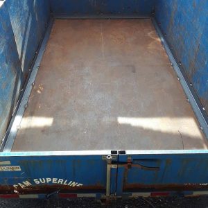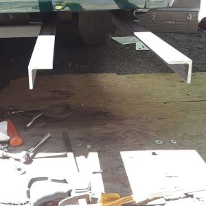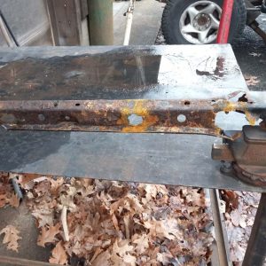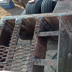 DUMP BED WELDING The sides of this dump body were badly rusted and needed to be reenforced. I cut out all the rusted channels and extended angle supports under the trailer and replaced outside support with heavy angle iron. I also reenforced the interior of the bed with angle iron as well.