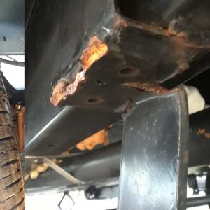 RV LEAF SPRING SUPPORT REPAIR This RV was in very dangerous condition as the leaf spring bracket was torn and ready to come off. It was fortunate that the owner saw this condition and got in touch with me..I see this alot with these particular RV’s. I removed the damage brackets and welded on new ones. It is now inspected and ready to go!