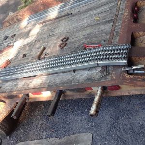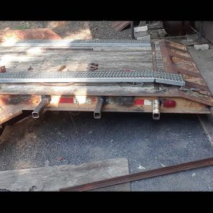 RESTORING A BADLY BENT RAMP ON TRACTOR TRAILER First, I had to weld the 8 inch tube steel to the trailer, then weld the 1 inch plate to the tube steel. Fabricated the old ramp and then welded up everything. Now he can load that trailer with a lot of weight!