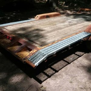 TRAILER TRACK REPLACE My customer wanted to extend the width of the trailer to accomodate the wider wheel base of his fork lift. I welded heavy tube steel to the frame on both sides. then welded the ramp extensions.
